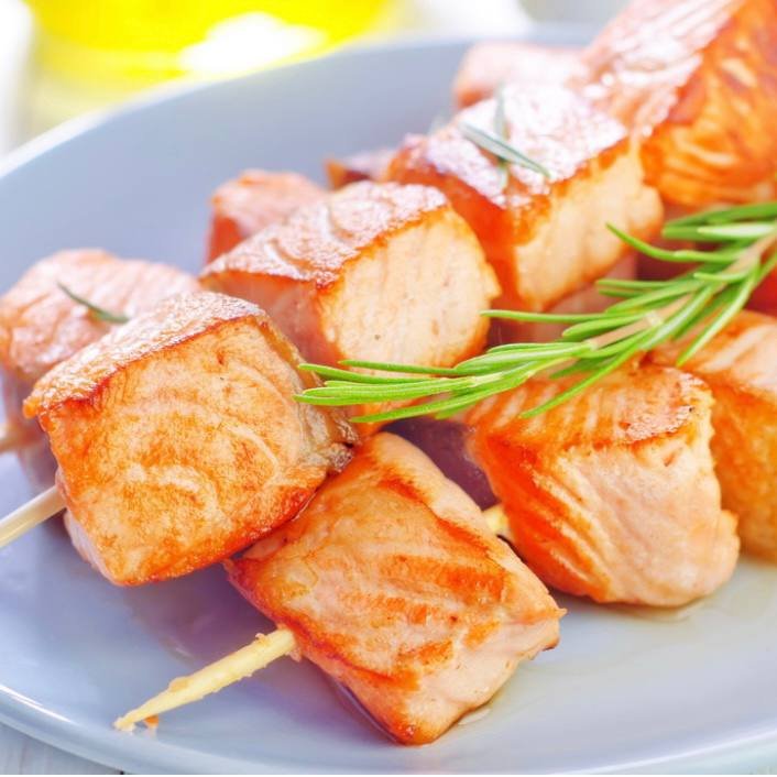 Atraskite išskirtinį skonį su mūsų raudonos žuvies šašlykais – tai kruopščiai paruošti, subtiliai marinuoti lašišos arba upėtakio gabaliukai, suverti ant iešmelių ir paruošti kepti.