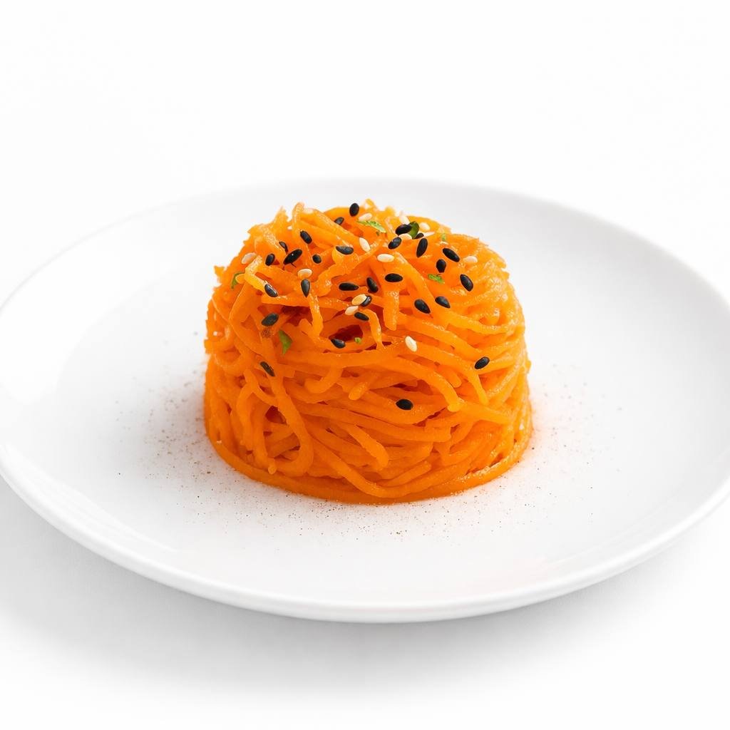 Morkų salotos su sezamais ir švelniu aštrumu.