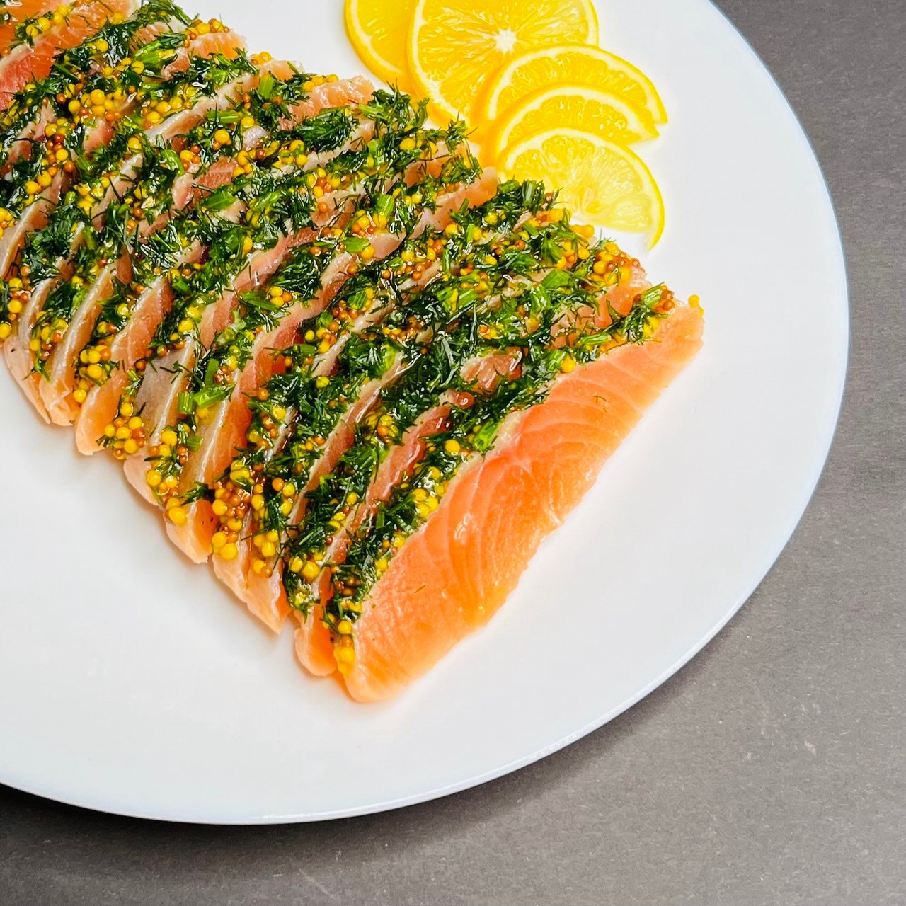 Subtilaus skonio sūdyta lašiša citrusiniuose vaisiuose su krapais – tai išskirtinis rankų darbo gaminys, kuriame susilieja švelnus žuvies sūrumas, gaivūs citrusų aromatai ir šviežių krapų natūralumas.